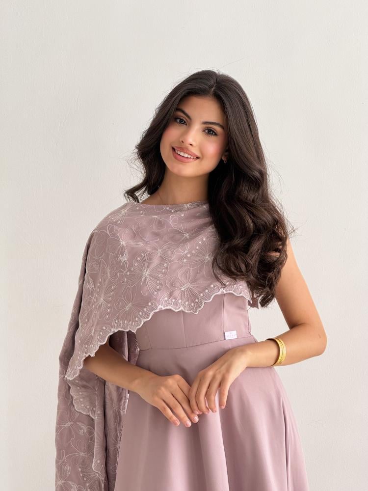 فستان موف بـ تطريز بالصدريه